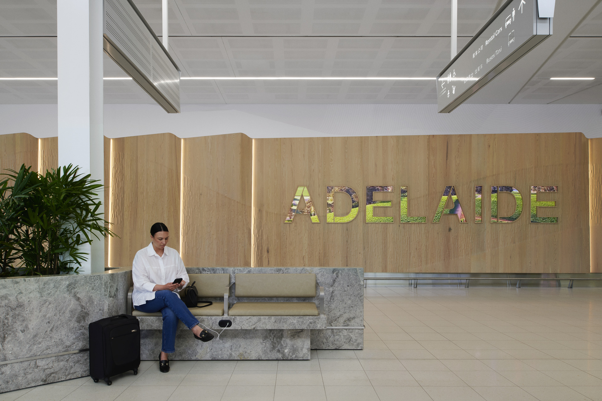 “Airports are measured by the people who use them,” she continues. “Adelaide Airport wanted to create a signature that was functional as it was beautiful. For us, it was about how you serve functionality equal to design, while making something enduring.”
