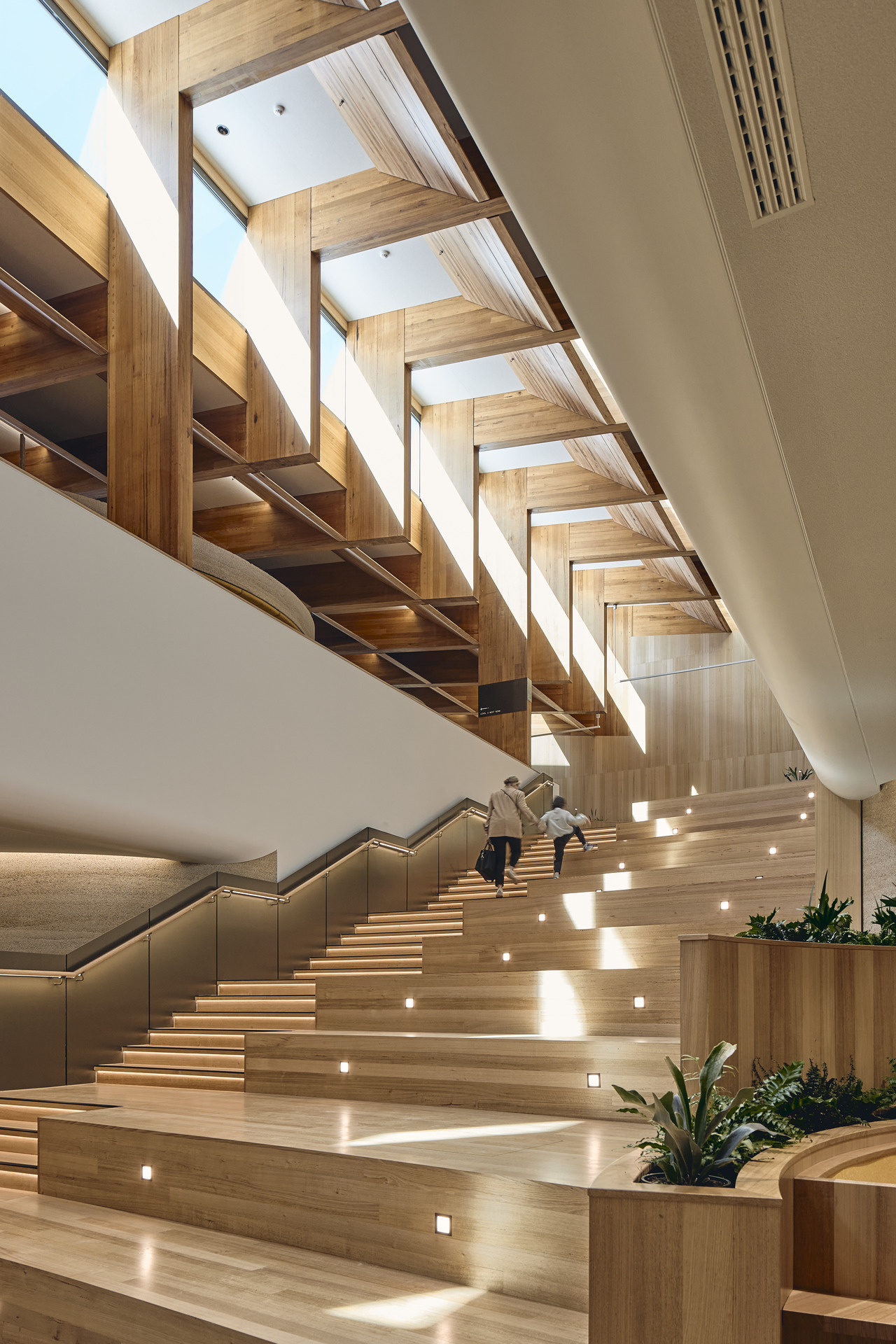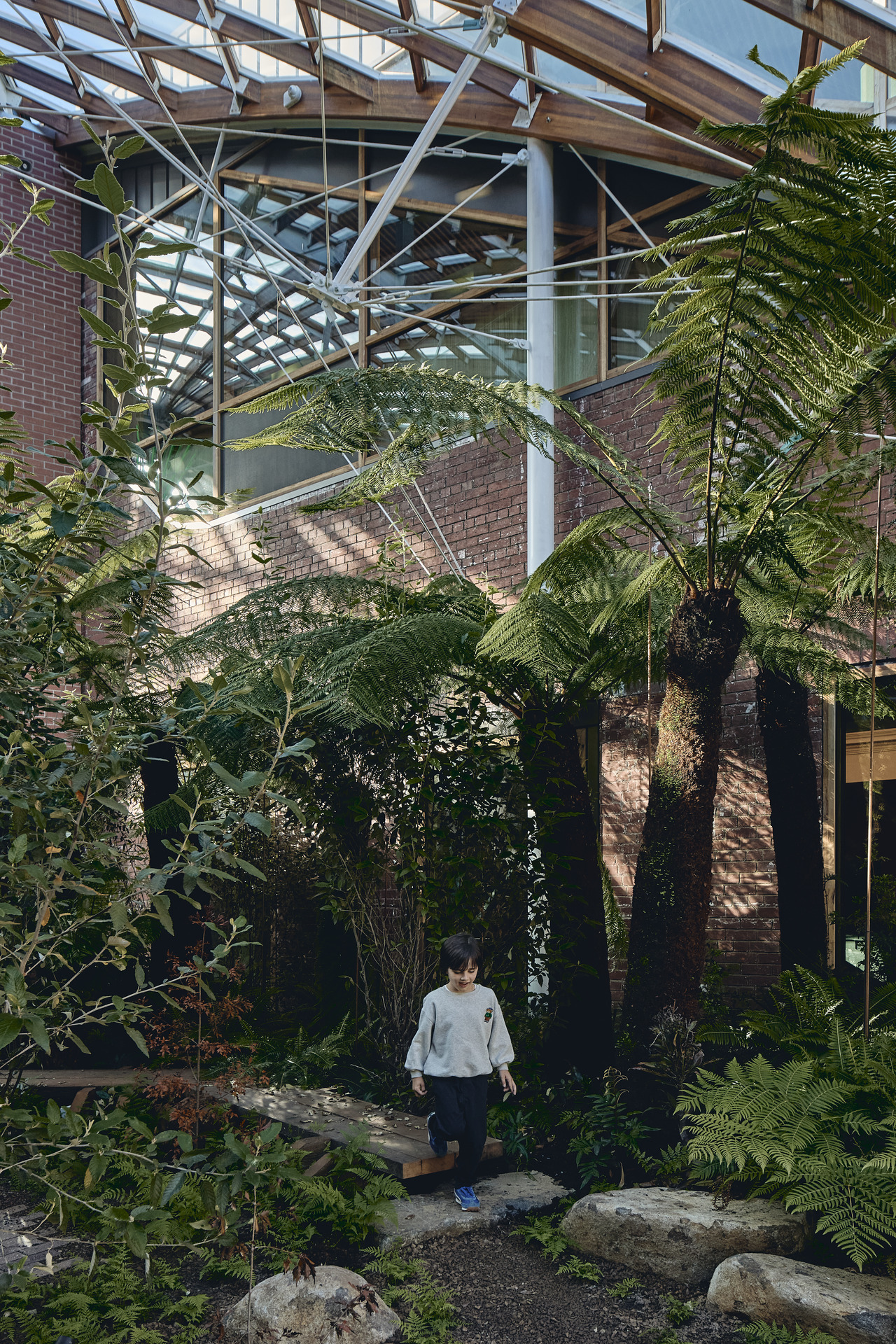 Celebrating the confluence of architecture and landscape, the design reinstates the indoor urban forest previously housed beneath the glass dome. This forested atrium forms the civic heart of the precinct, re-establishing a pre-colonial ecosystem within the city through ethically sourced mature trees and visible water systems.