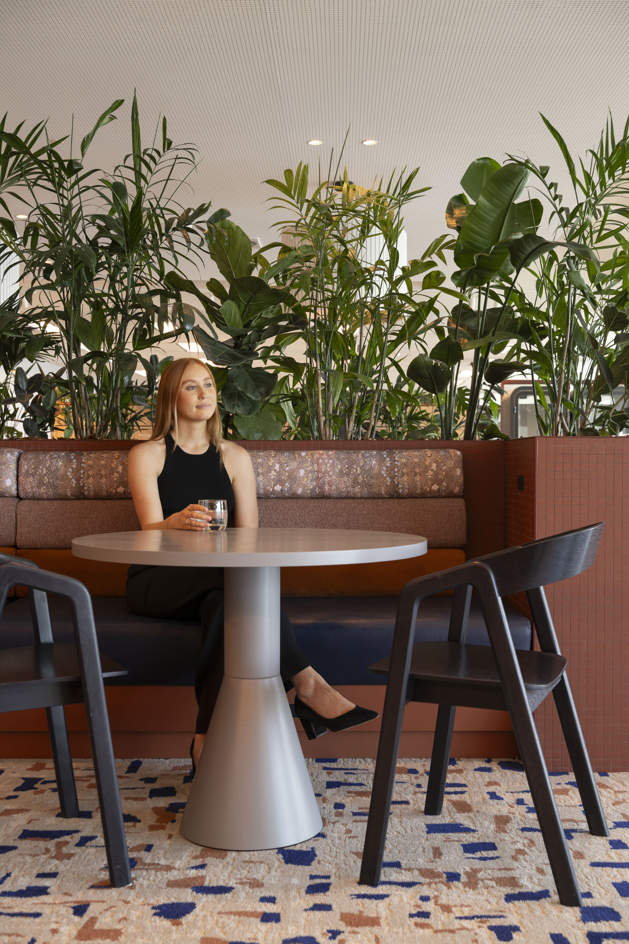 Woods Bagot Senior Associate Ashleigh Lyford says, “the layering of durable, natural, and soft materials formed a harmonious blend of unexpected yet complementary textures, resulting in a palette that feels both fresh and familiar. The thoughtful integration of colour and materiality was designed to create a space that seamlessly harmonises with the site’s expansive views.”