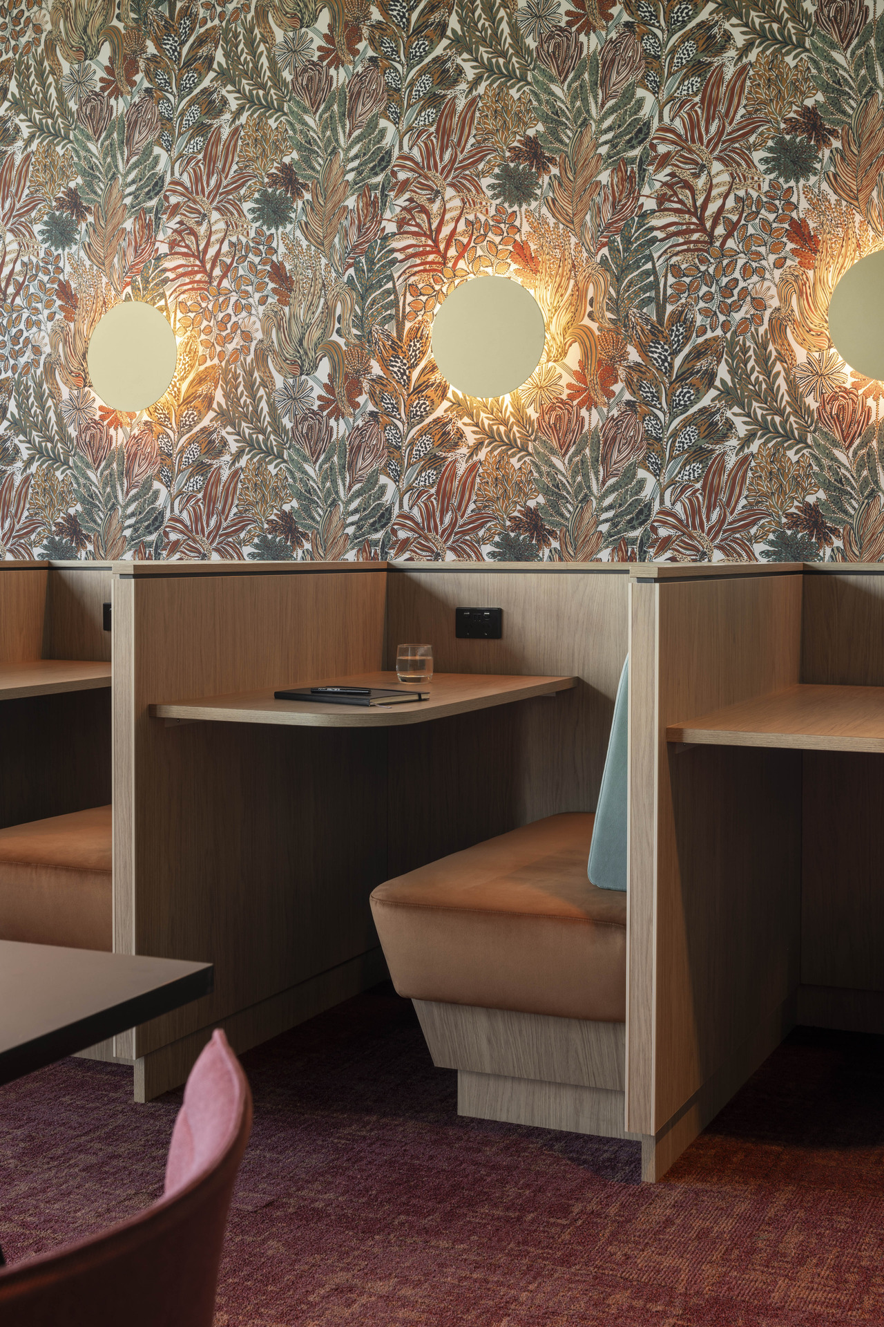The design draws from four distinct environmental experiences that define Western Australia’s character. Site (Boodja) grounds the space in deep textures and carved forms, reflecting the raw beauty of the land. Country (Boorna) embraces biophilic design with accents inspired by native flora, creating refuge and escape within the corporate environment. Port (Wardan) channels the working waterways s through deep and patina hues and honest detailing that celebrates functional design. City represents the client’s global reach while maintaining its roots in local identity through structured, efficient workspace design.