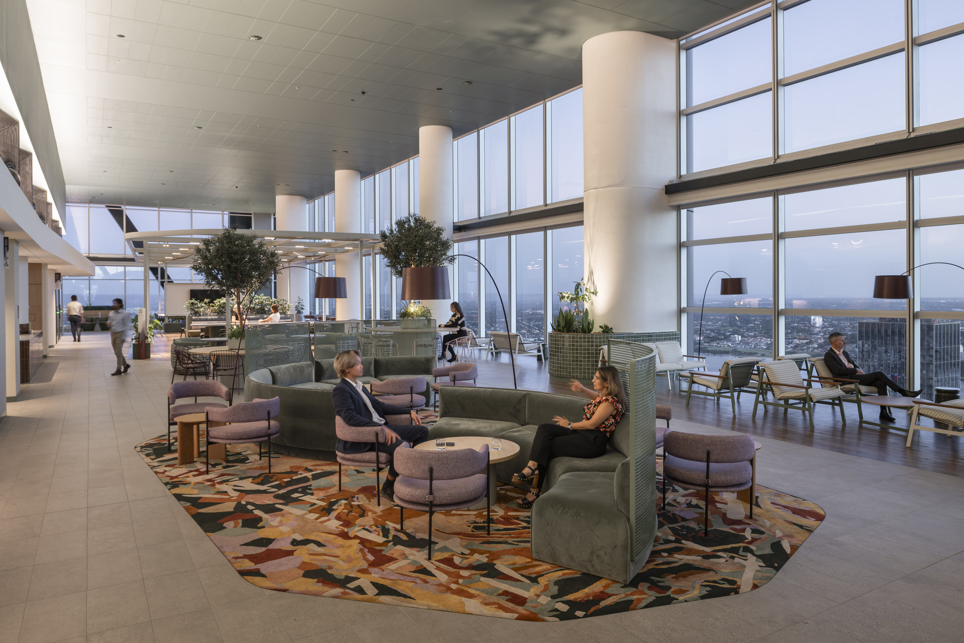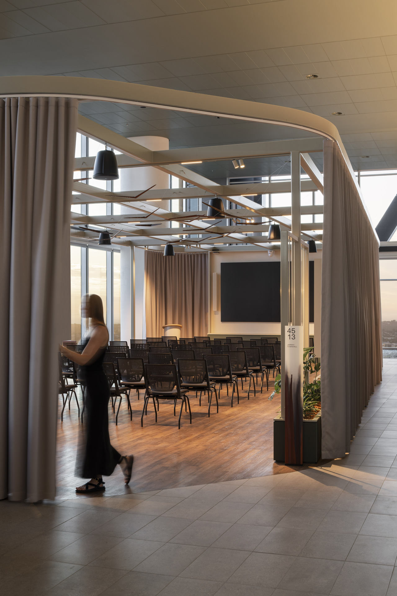 “Central to the design is the rich narrative of connection—to Country, site, port, and city —woven throughout the space. Meeting rooms and open lounges strategically line the perimeter, offering inspiring city views that serve as constant reminders of place and context.”
