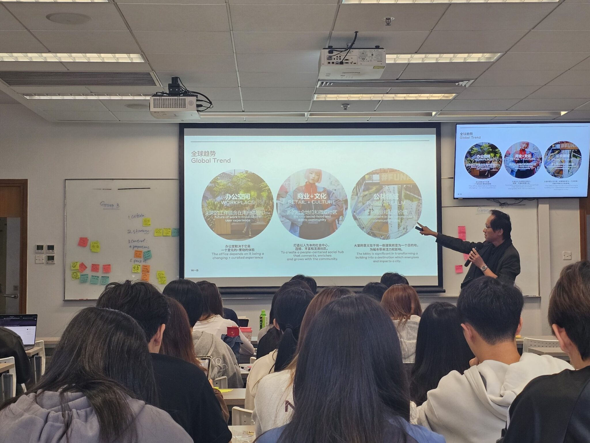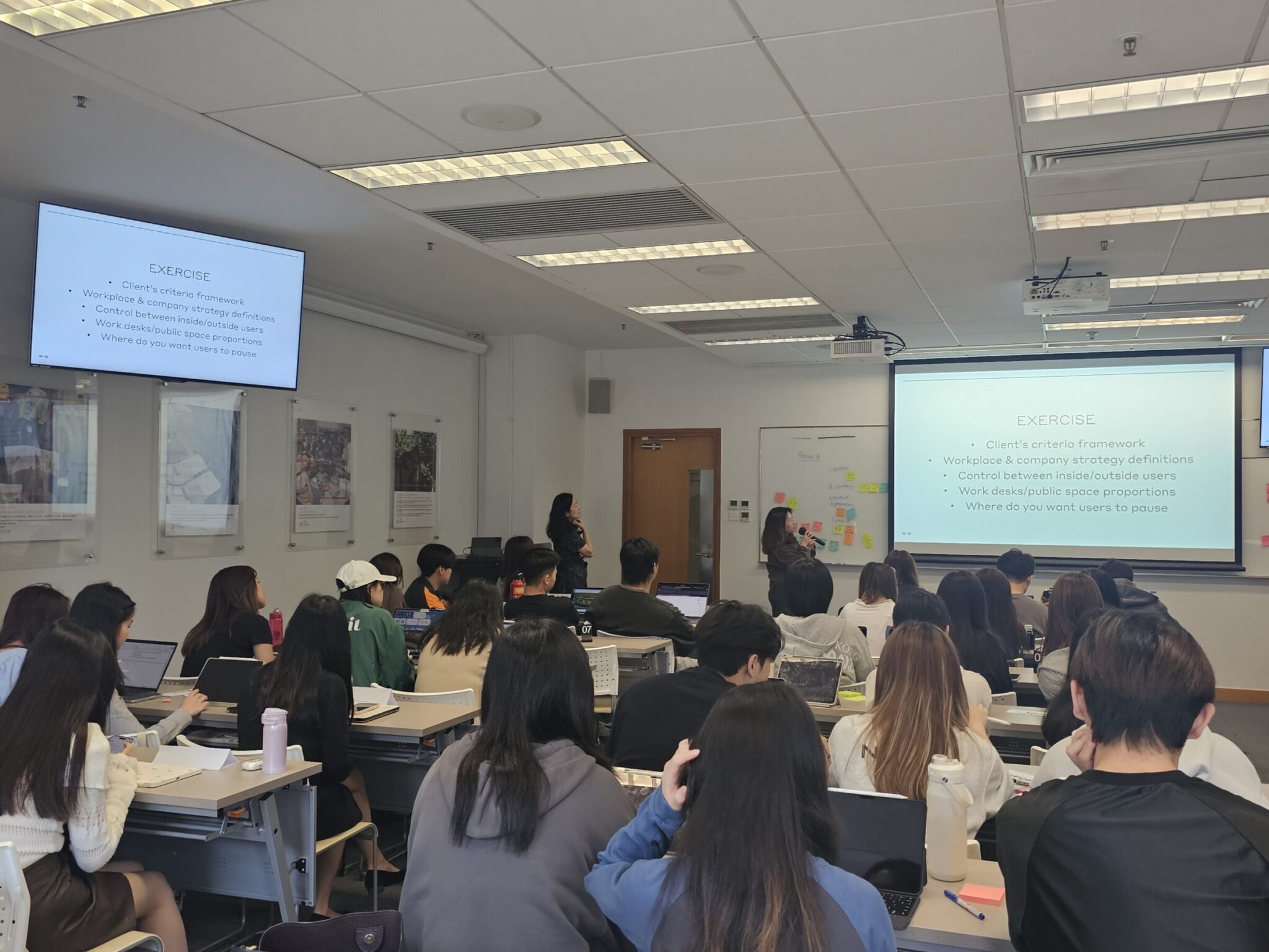 Using examples from workplace, mixed‑use, retail and education projects across Asia-Pacific, the two showed students how circulation, safety, sustainability, technology and long‑term maintenance shape early design decisions. They also discussed evolving trends such as hybrid work, community‑driven spaces and data-informed planning.