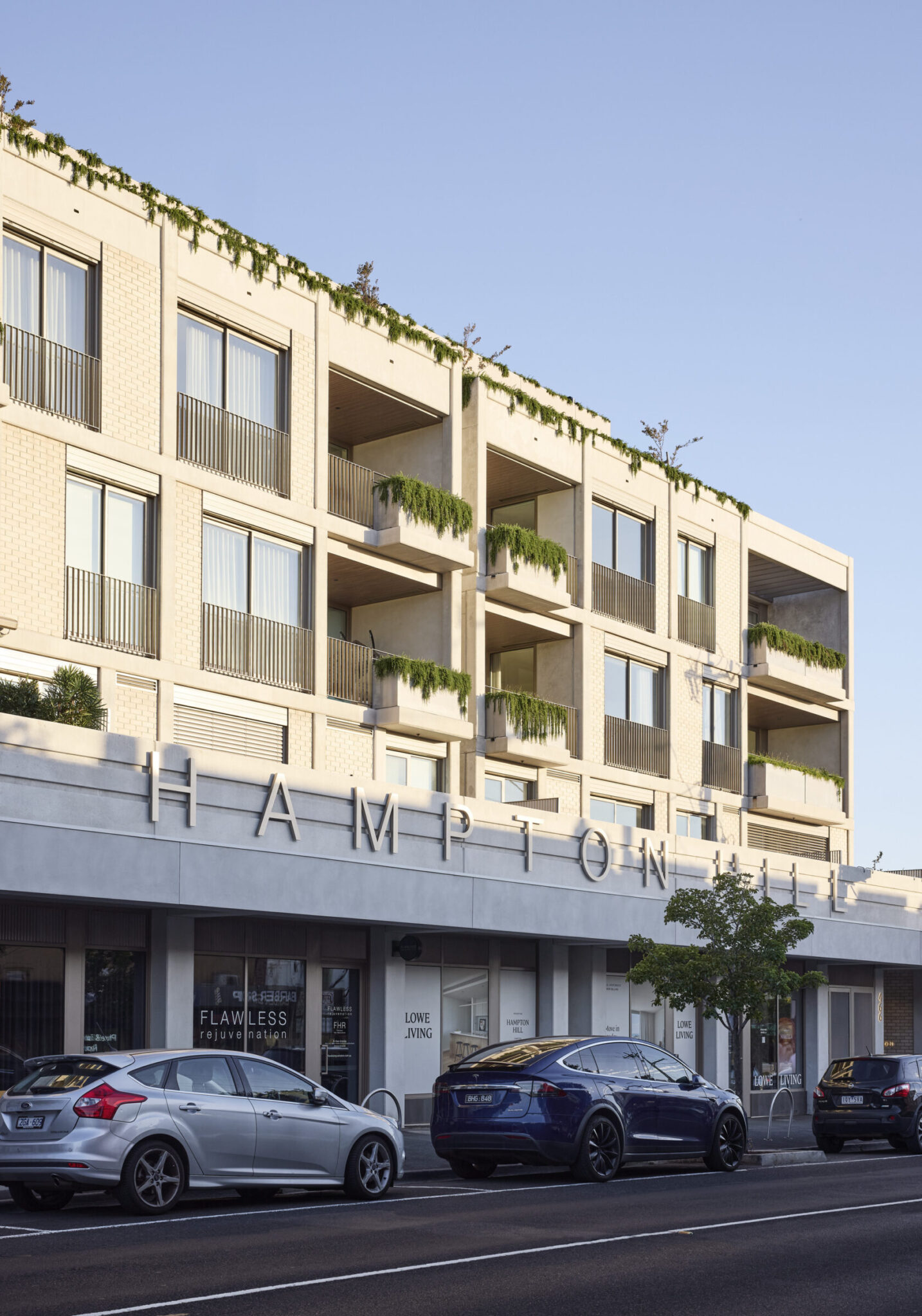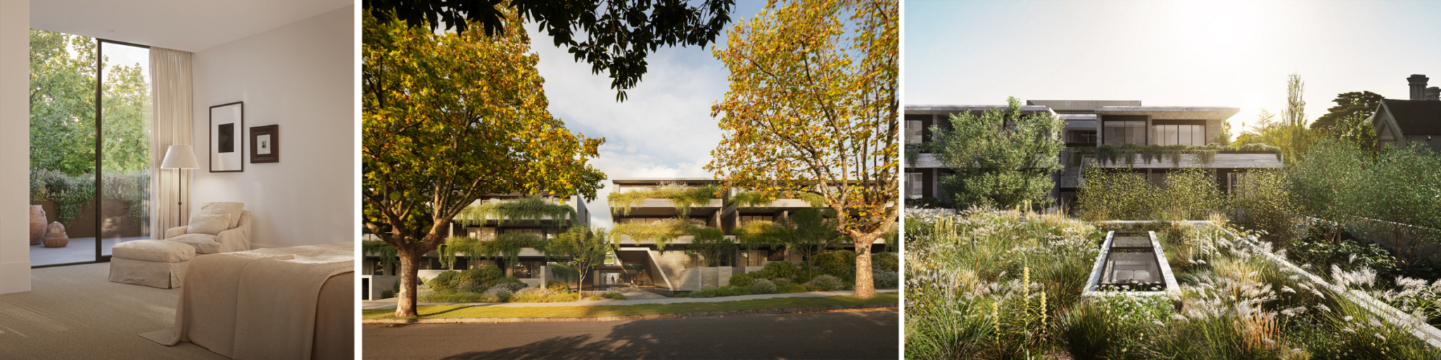 At Elsternwick, the team worked with landscape architects Oculus to create a sense of calm enclosure. Developed by Milieu, a network of low-rise buildings is woven through lush gardens, allowing greenery to lead. Residents share a gardener and a private gate with Rippon Lea Estate, extending the domestic realm into seven hectares of heritage-listed Victorian gardens.
