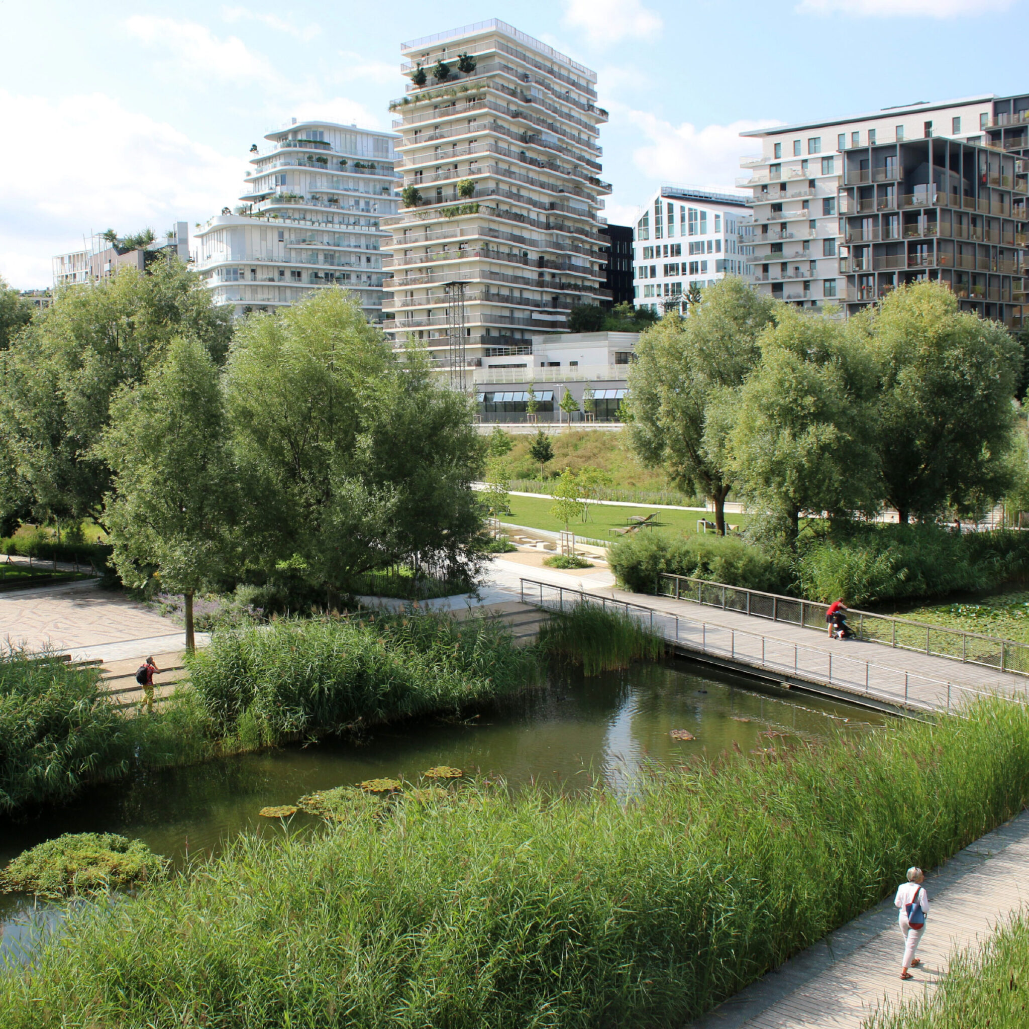 At the precinct scale, projects such as Clichy Batignolles in Paris show how landscape led systems can operate as core infrastructure. In these contexts, green space manages heat and water, supports biodiversity, and provides social amenity while delivering multiple urban functions through a single intervention.
