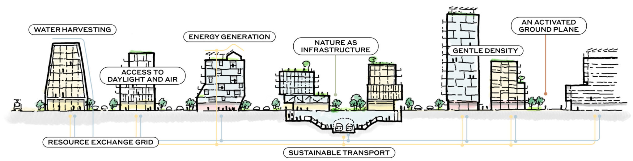 Lean cities are not about building less, but about building smarter. Gentle density illustrates how cities can achieve urban yield without excessive height, bulk, or resource input. Mid rise, human scaled urban form supports walkability, access to daylight, natural ventilation, and social interaction, while reducing reliance on mechanical systems and energy demand.