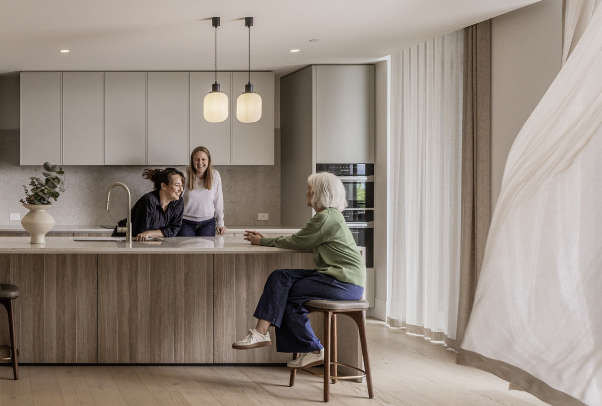 The Vinyl Generation wants homes that support independence and adapt to changing needs without making those supports obvious. That means considered design: ovens at standing height, drawer-style dishwashers, easy-access cabinetry, wide corridors, and bedrooms generous enough for heirloom furniture or mobility aids. It’s practical, never clinical. At St Clare, these principles are quietly embedded. Design details reference the surrounding landscape, from the preserved white gums outside to the subtle botanical finishes within – creating a place that feels both grounded and future-ready.