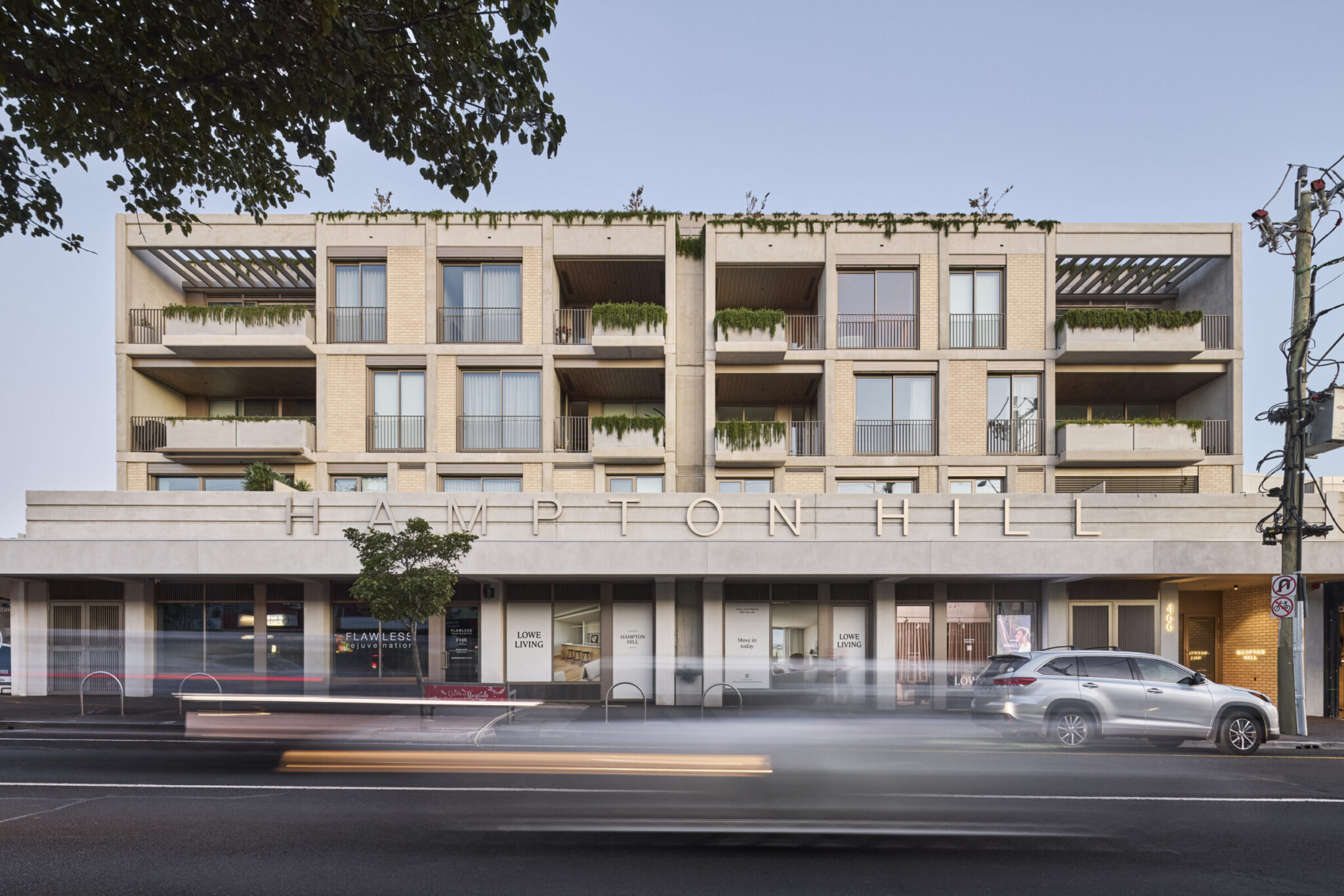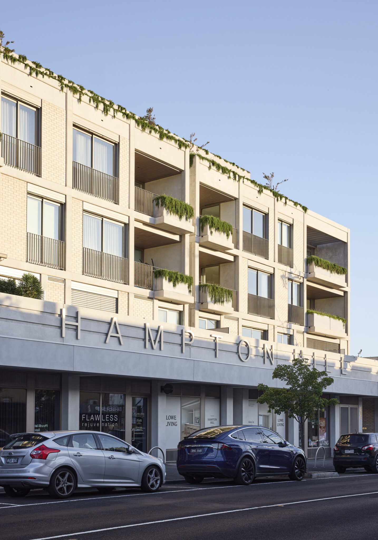 The refined upper levels pull away from Hampton Street, clad in fine metal to break down the visual mass, while ground floor retail continues the commercial frontage on Hampton Street. The building subtly breaks down into two masses, with the unique façade articulation presenting to the street as two discrete forms, reducing the building’s sense of scale at street level.
