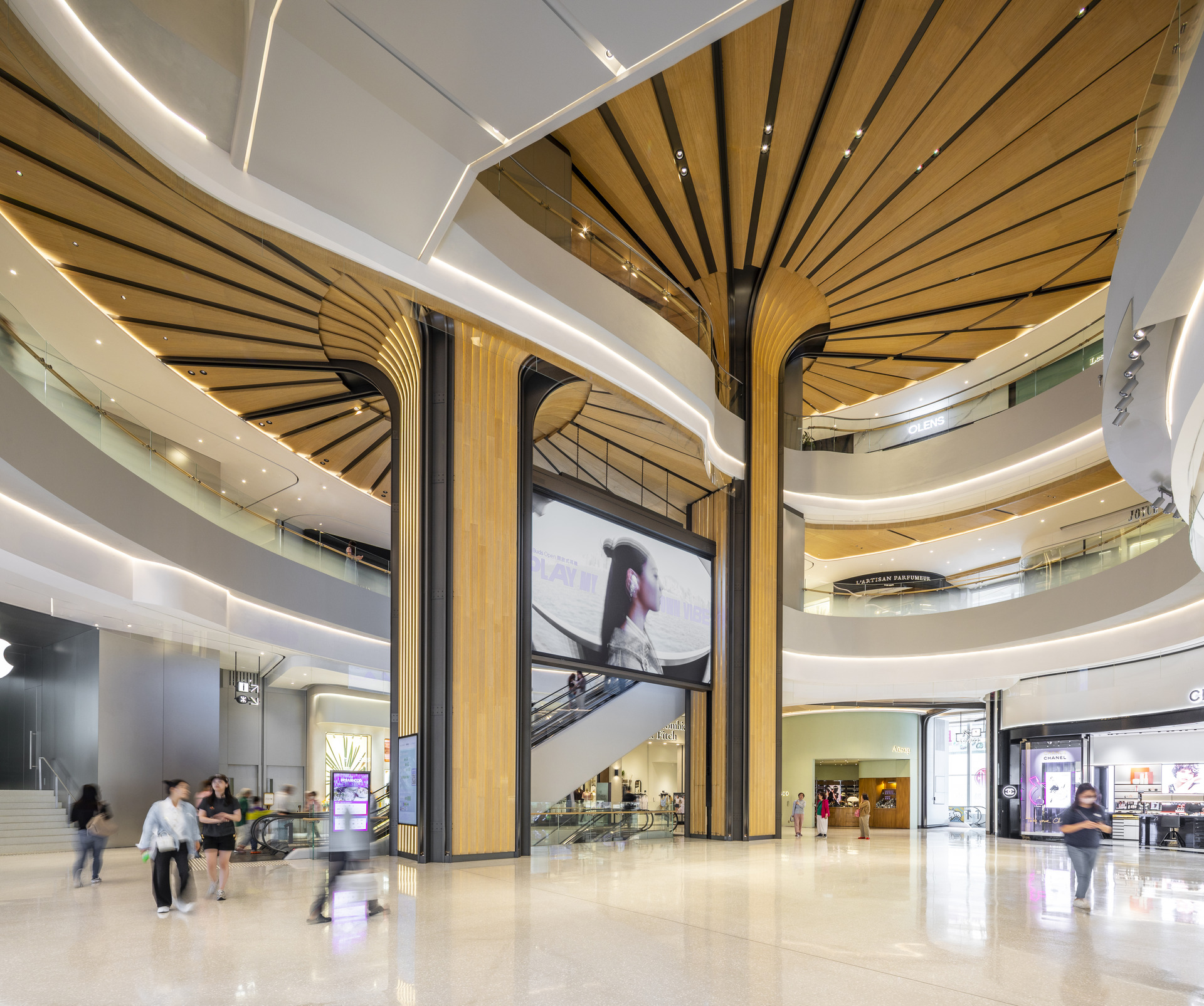 Within the interior, a new atrium was carved out across the fourth to sixth floors to form a central, multi-level hub. This space is designed not just for circulation but as a platform for co-creation, physically and visually connecting retail zones while hosting street culture markets, art exhibitions, brand activations, and live performances. It embodies the project’s core objective: to create an open environment where people can shop, gather, and participate.