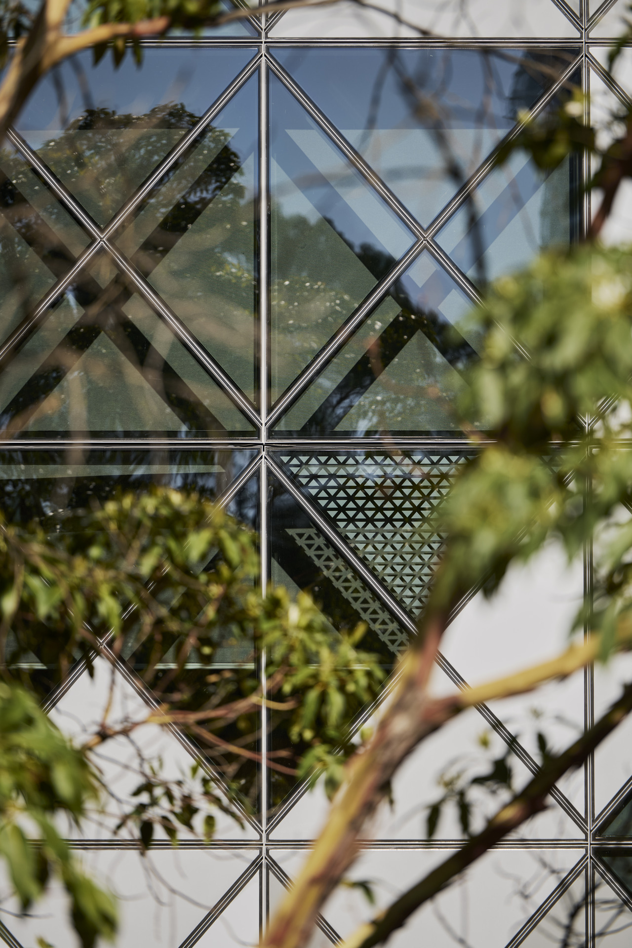 Using three different metal panels, the façade shifts character throughout the day. In summer, it mirrors the density of the tree line. In winter, its geometric folds catch the low sun and echo the branching patterns of bare limbs.