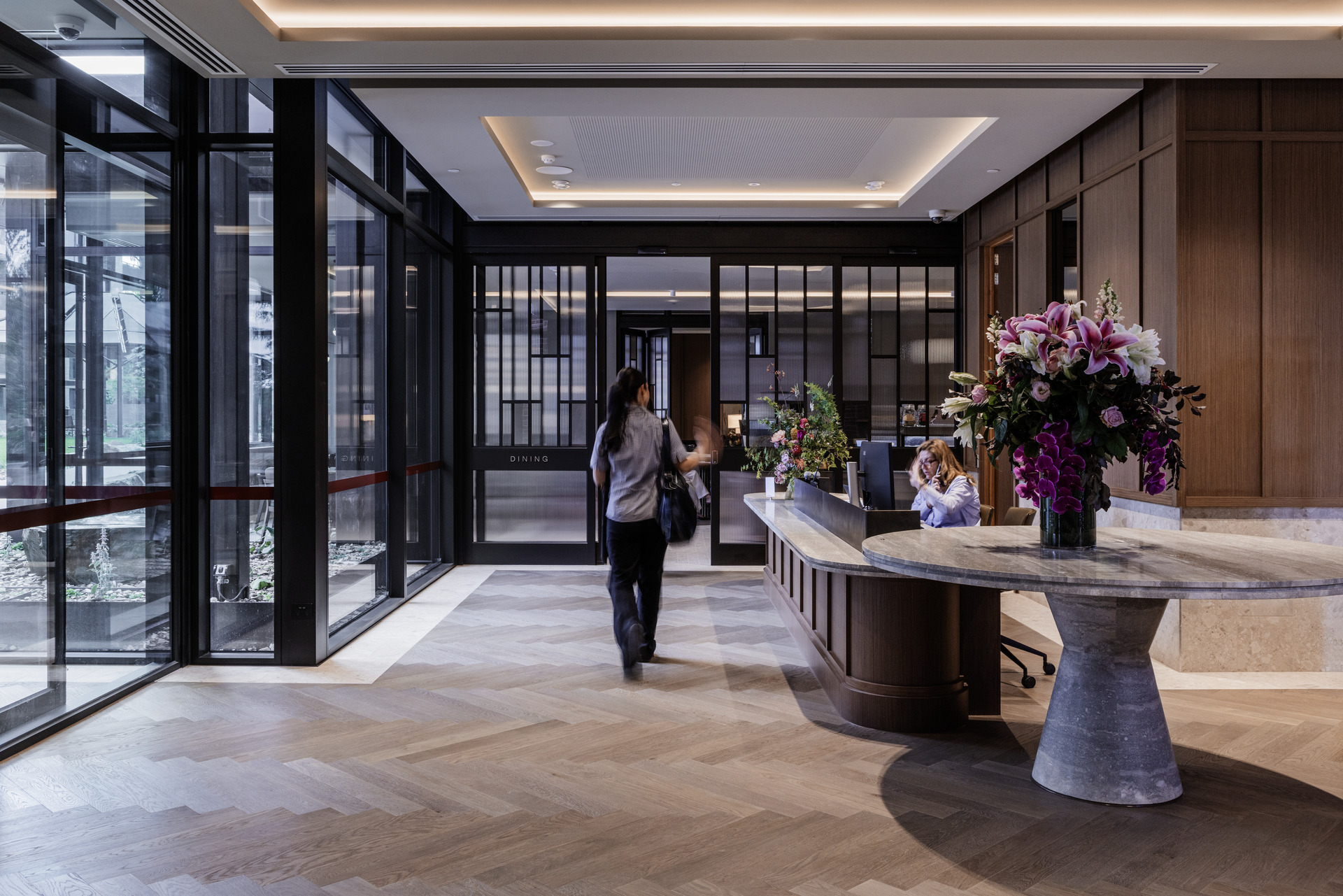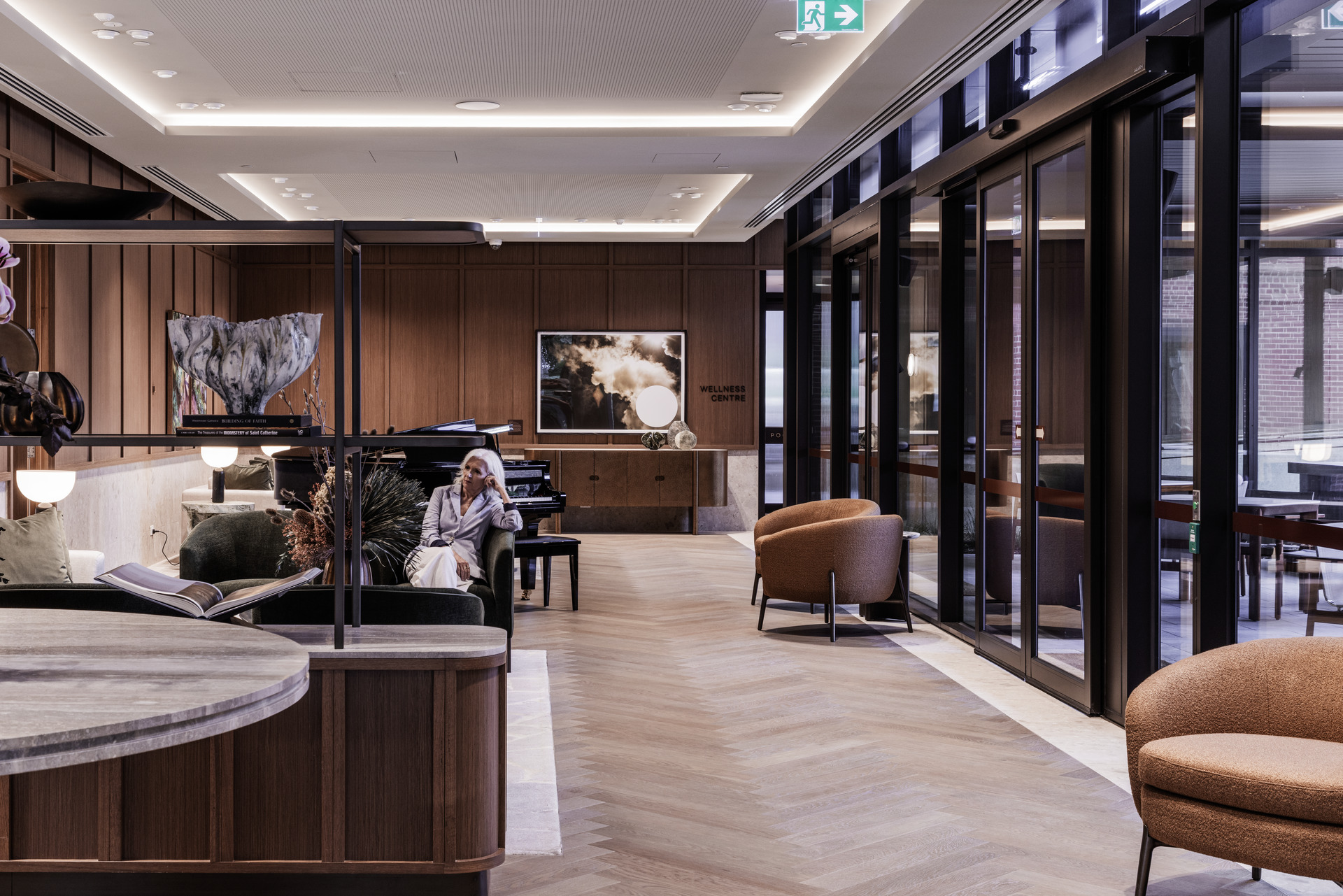 Among the residents’ facilities are shared and private dining rooms, a wood panelled library, pool, gym, greenhouse, potting shed, community gardens, a public and private café, billiards room, massage suites, arts and craft studio, village green, chapel, cinema and wellness studio.