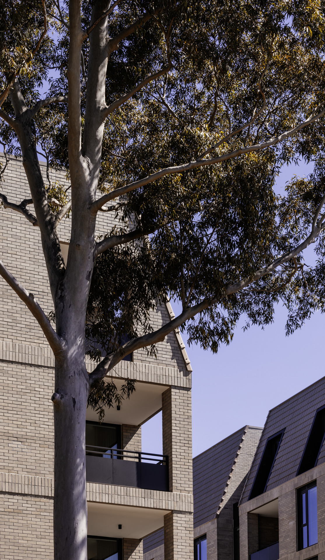 Masonry brickwork of varying tones, articulated by metal work in contrasting colours, are the predominant materials, offering variety and individual building identity.