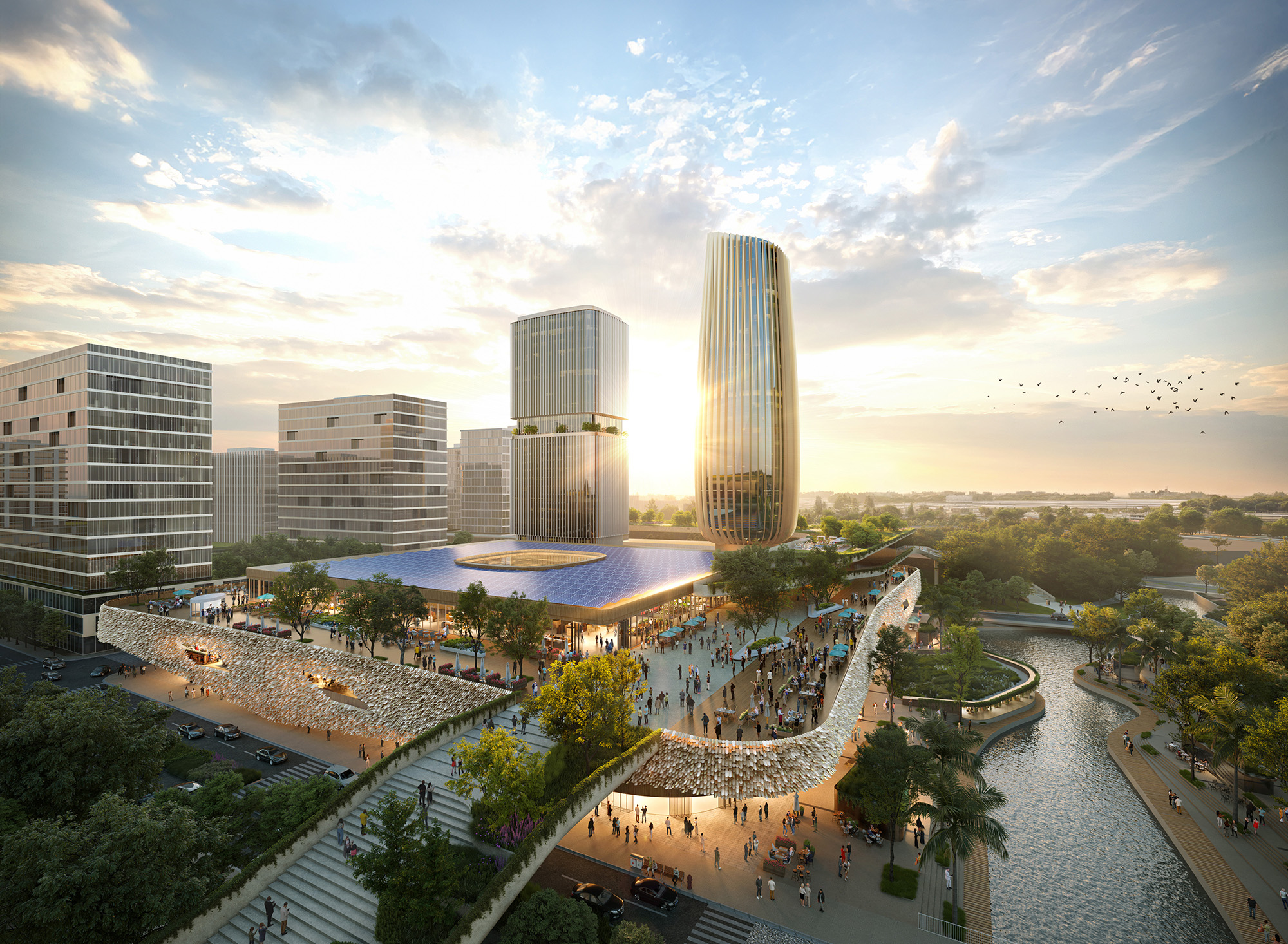 相反,我们始终秉持“以场所为先”的理念。换言之,我们致力于建立与城市的物理与视觉联结,发掘休憩空间,并引入亟需的配套设施——这些通常超出商业方案提案的范畴——从而提升会议体验与代表感受。我们将“巨型盒子”的思维模式颠倒过来,让城市特质自然融入其中。