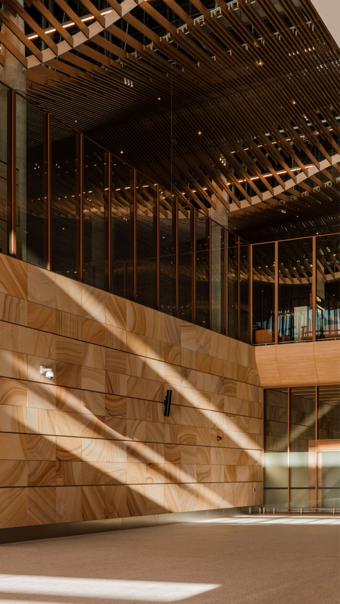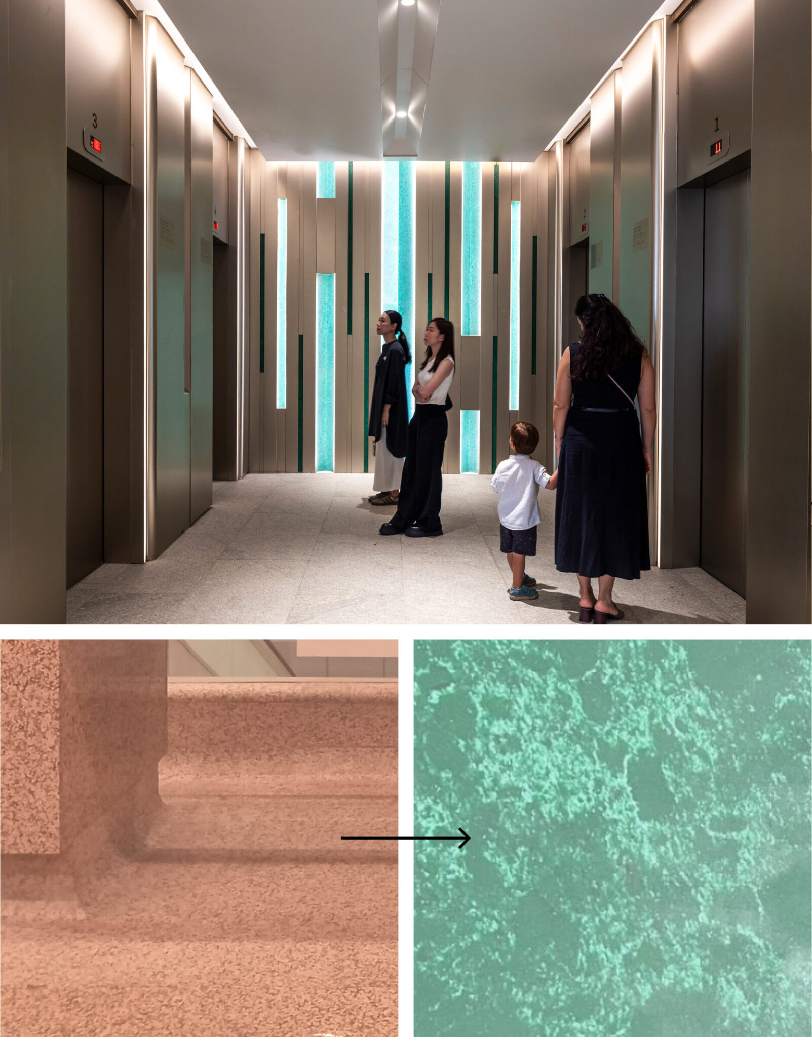 现有的花岗岩被改造为新的设计元素——面板——恒生银行香港总行。