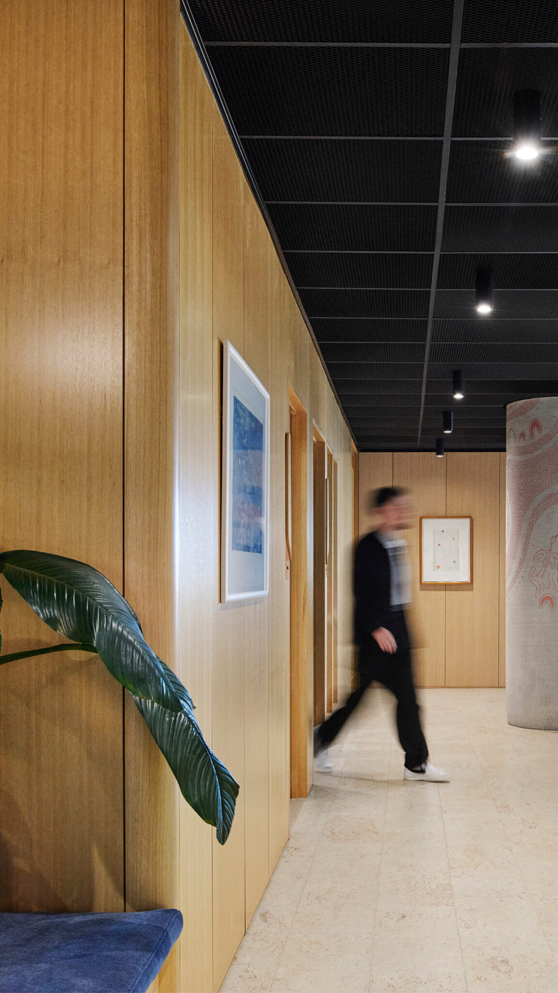 循环设计策略侧重于实现材料的拆解、改造和再利用,而非将其固定在永久性组件中。 在澳新银行阿德莱德分行,整个内部装修工程均采用了循环经济墙体框架系统——这是澳大利亚首个采用该系统的商业办公项目。该系统专为拆卸和场外预制而设计,可在不产生建筑垃圾的情况下实现未来的空间重组。项目团队还保留了65%的原建筑天花板板和50%的地毯板,进一步降低了装修工程的整体环境足迹。