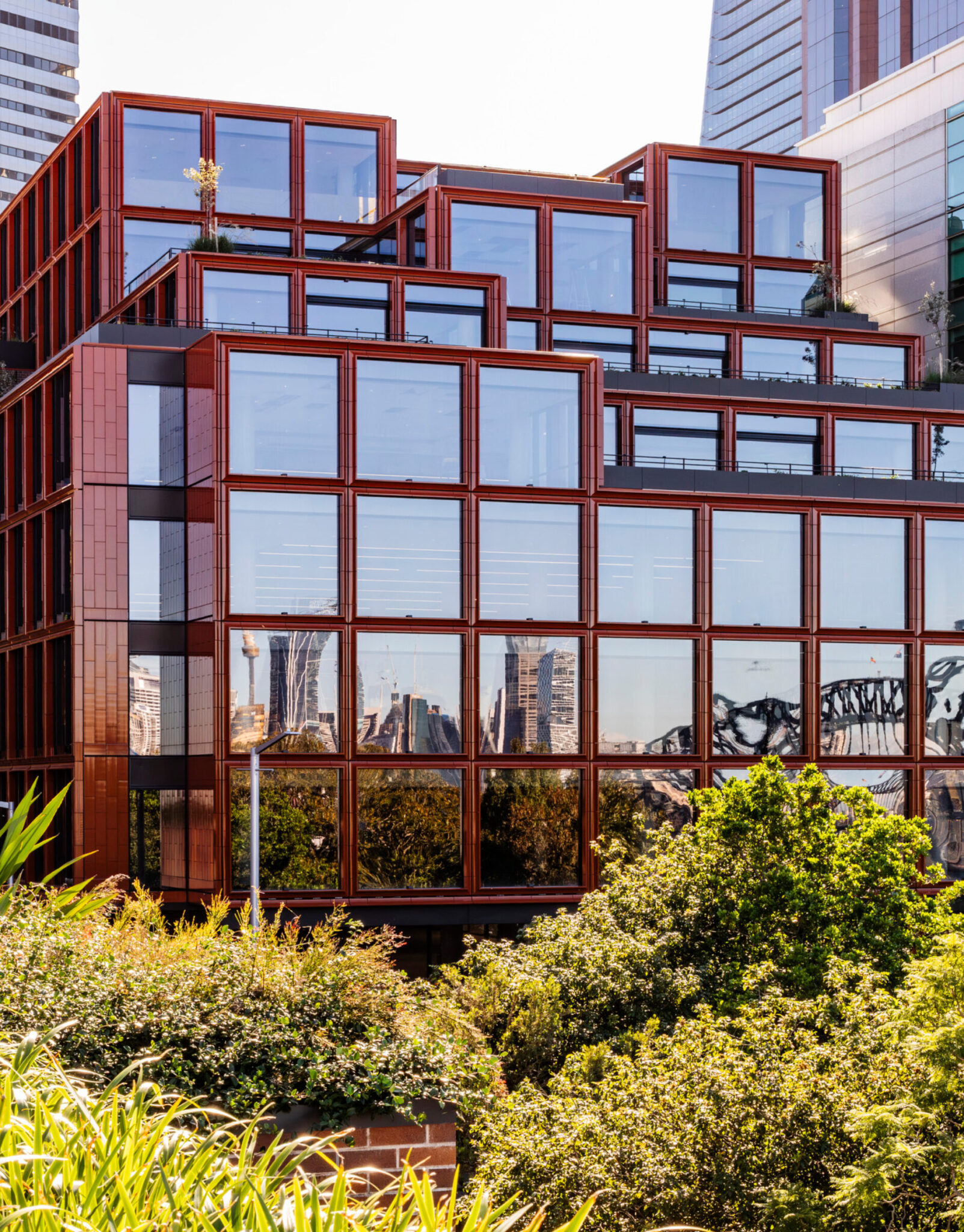 布里斯班的Heritage Lanes项目被设计为一座运营阶段实现净零碳排放的办公楼,其建筑基础设施完全由可再生能源供电。建筑立面经过特殊设计,旨在限制太阳辐射传入,从而全年降低供暖和制冷负荷。