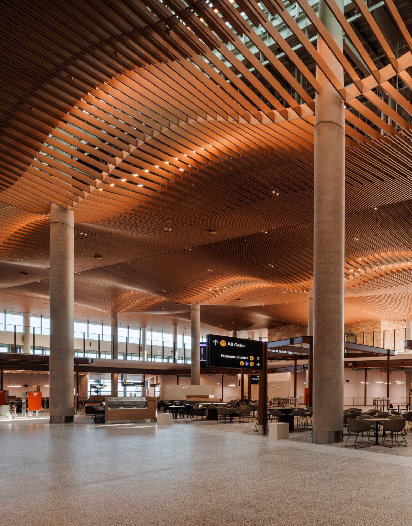 在不影响功能、容量或建筑设计构想的前提下,通过整体减少材料用量,可以实现显著的碳减排。在西悉尼国际(南希·伯德·沃尔顿)机场,通过优化设计,在保持完整客运容量的同时,缩小了整体占地面积,减少了正面立柱的数量,并缩短了登机廊桥的长度。这些调整使混凝土和钢材的使用量减少了约20%,相应的隐含碳排放量也随之降低。