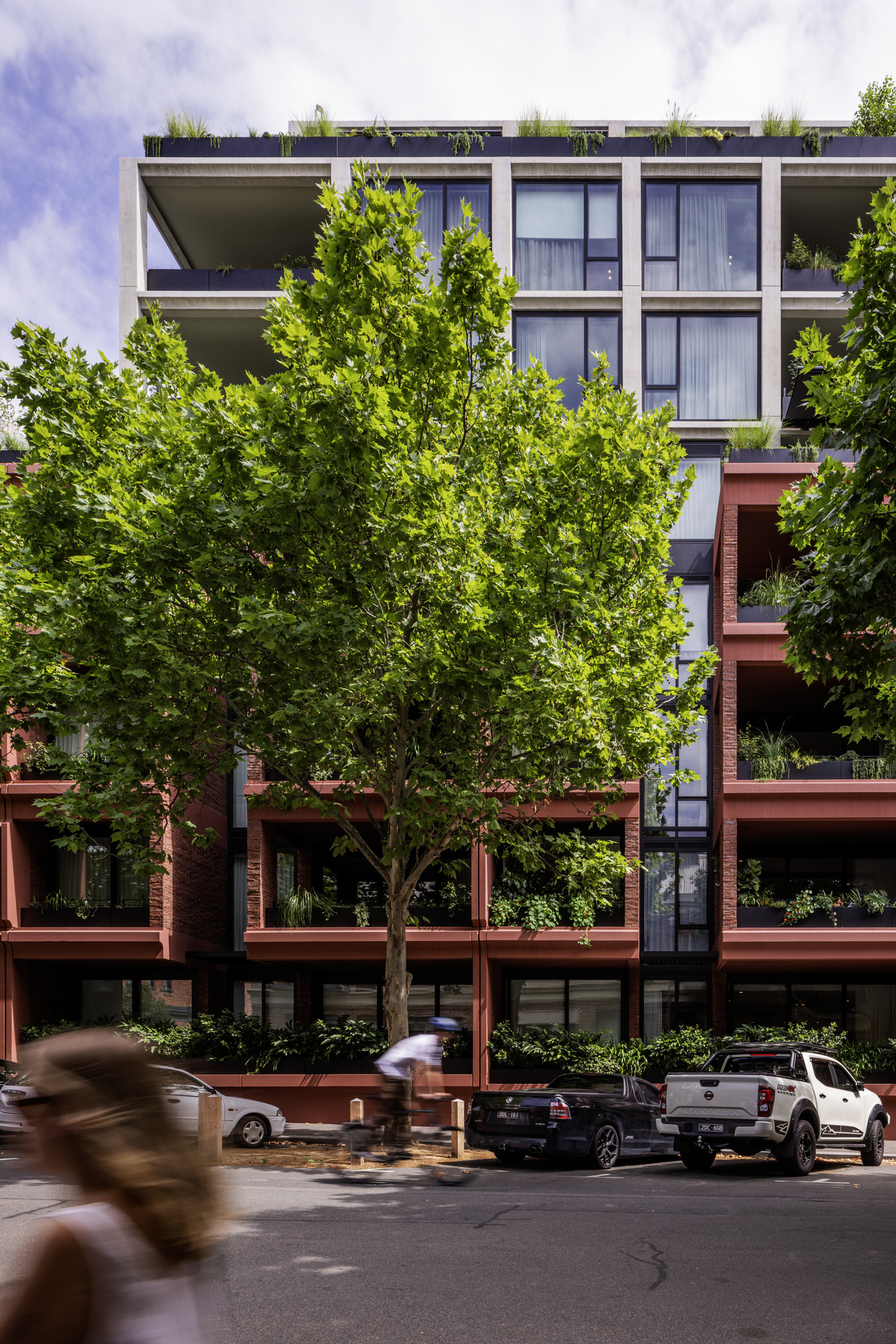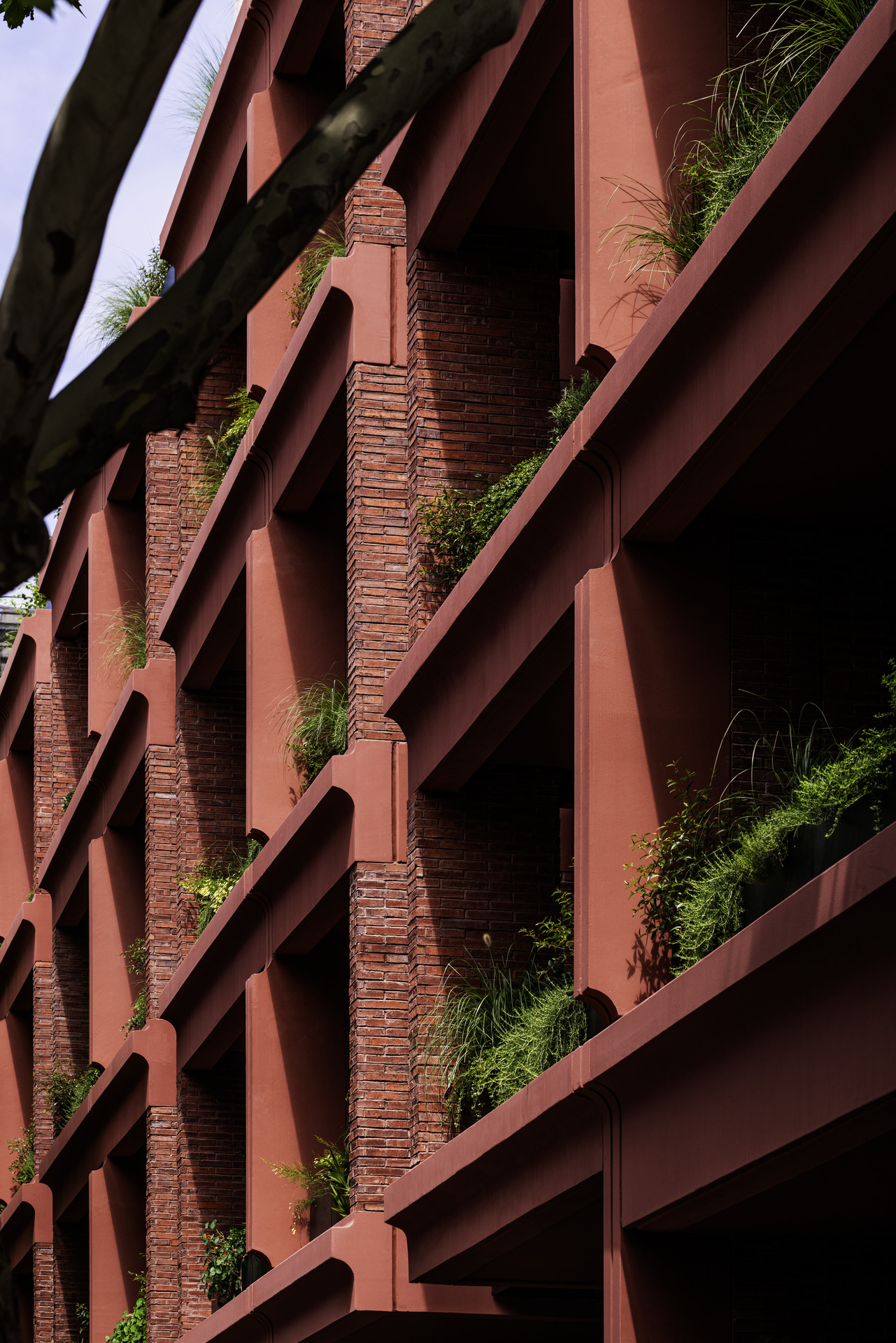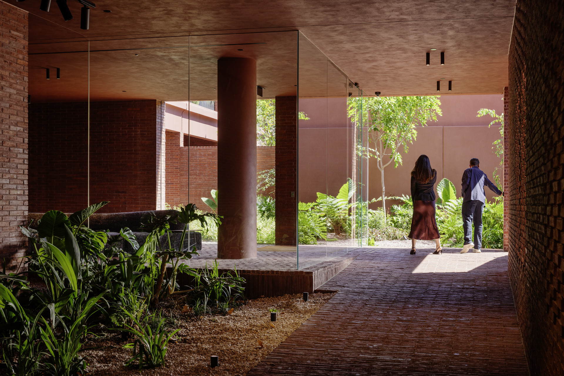 自然光和通风通过南北向的轴向通廊渗透进来,通廊由砖砌成,这种建筑姿态打破了建筑的规模和体量。砖砌结构营造出一种坚固感和私密性,而围墙花园则将该项目与熙熙攘攘的街道隔离开来。